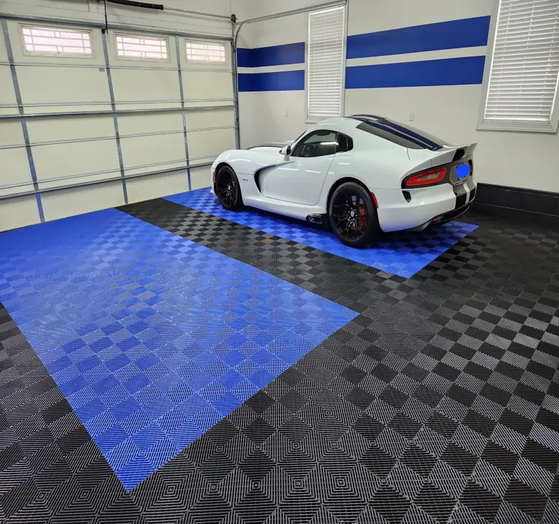 The tiles are interlocked and are naturally waterproof and impervious to chemical spills. They provide a cushion effect as well, and this aspect makes them less tiresome in case you have to work many hours at the garage. Although the initial cost of interlocking garage tiles the material may be a bit more than a simple basic epoxy kit, the time spent on installation and also the necessity to hire skilled labor would be a big saving in the overall cost. What is more, when a tile is broken, you just pull out the old one and add a new one- an actual convenience in maintenance.